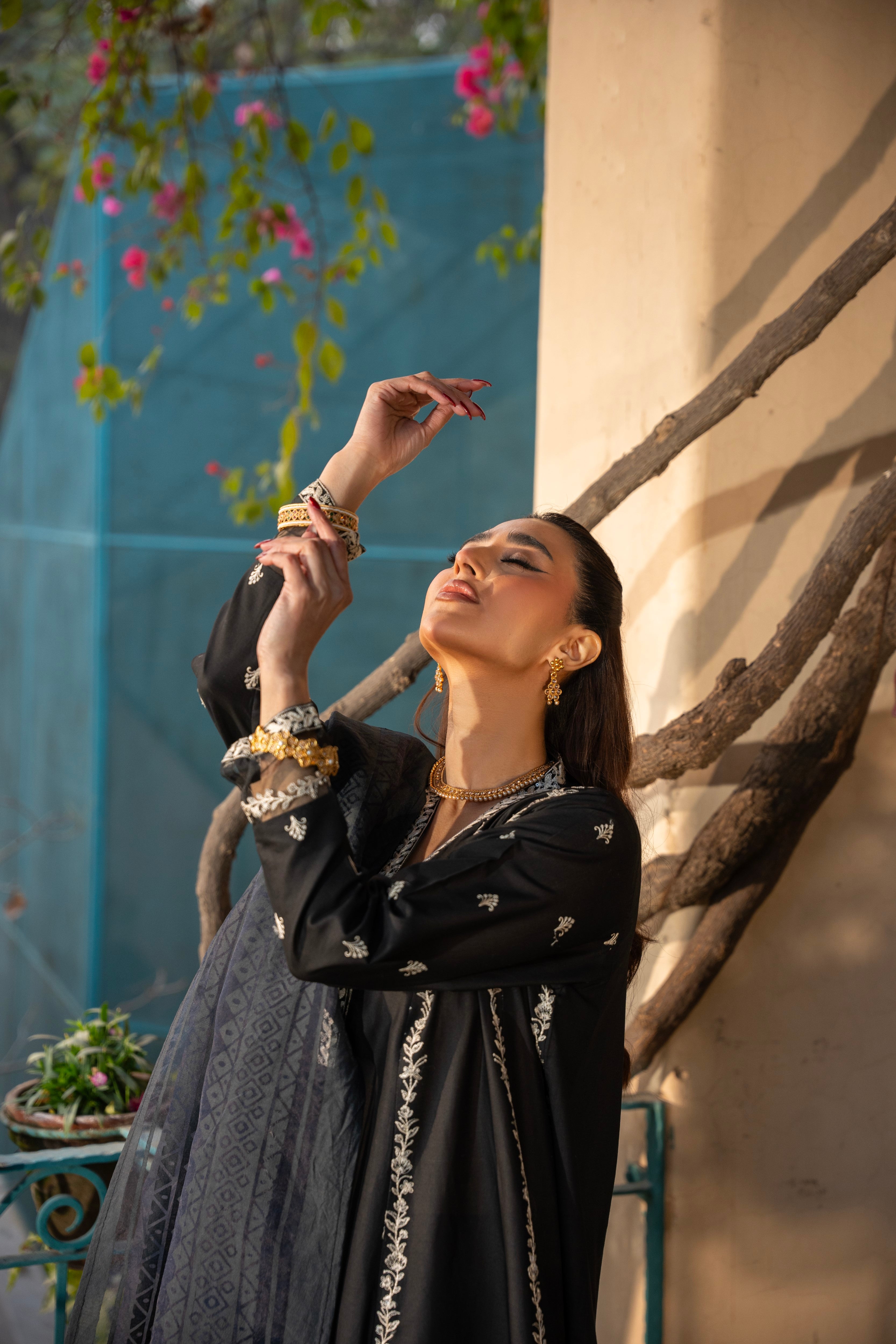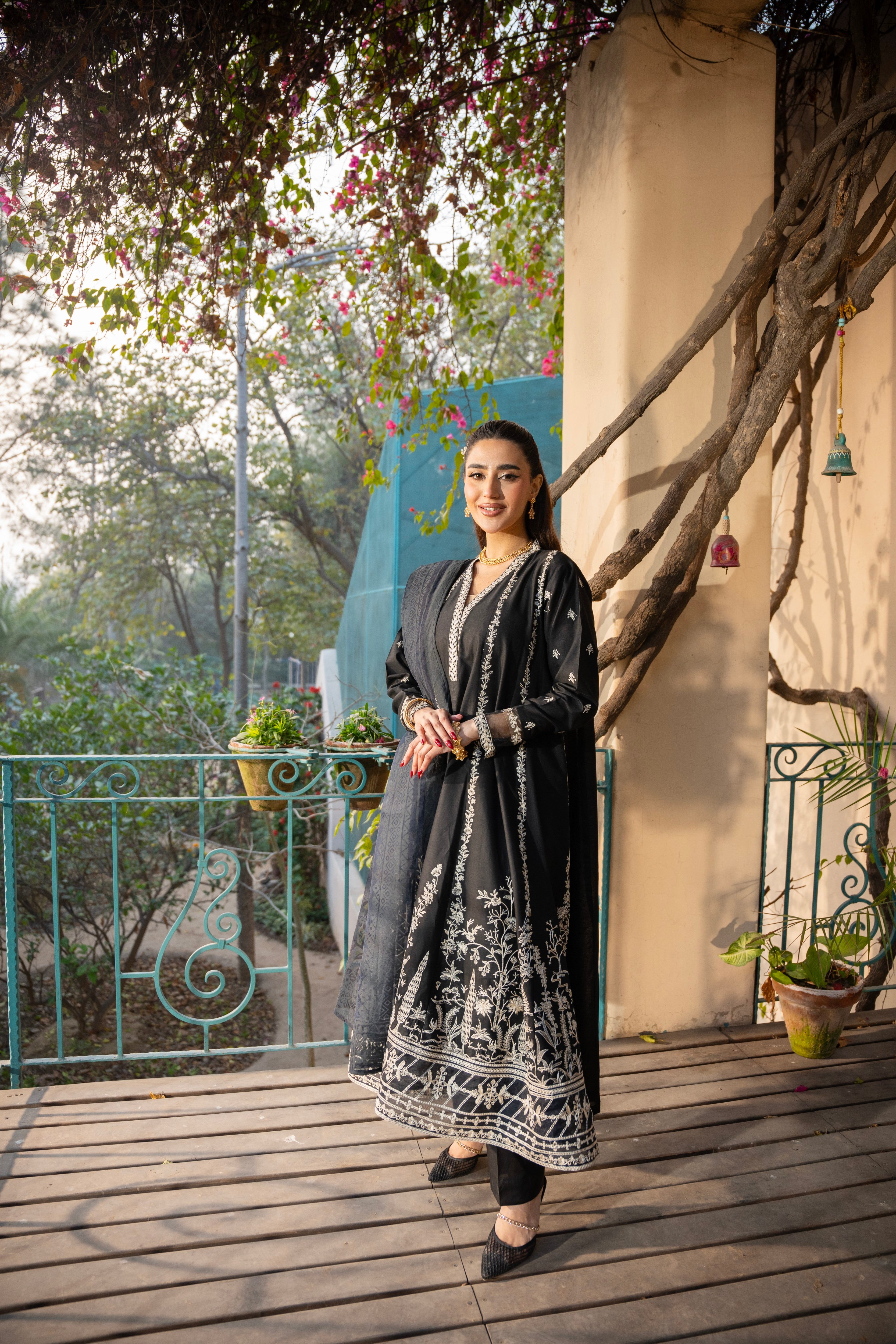 Make a statement with this graceful frok-style outfit that beautifully blends traditional embroidery with contemporary design. Perfect for those who appreciate refined elegance and timeless style.