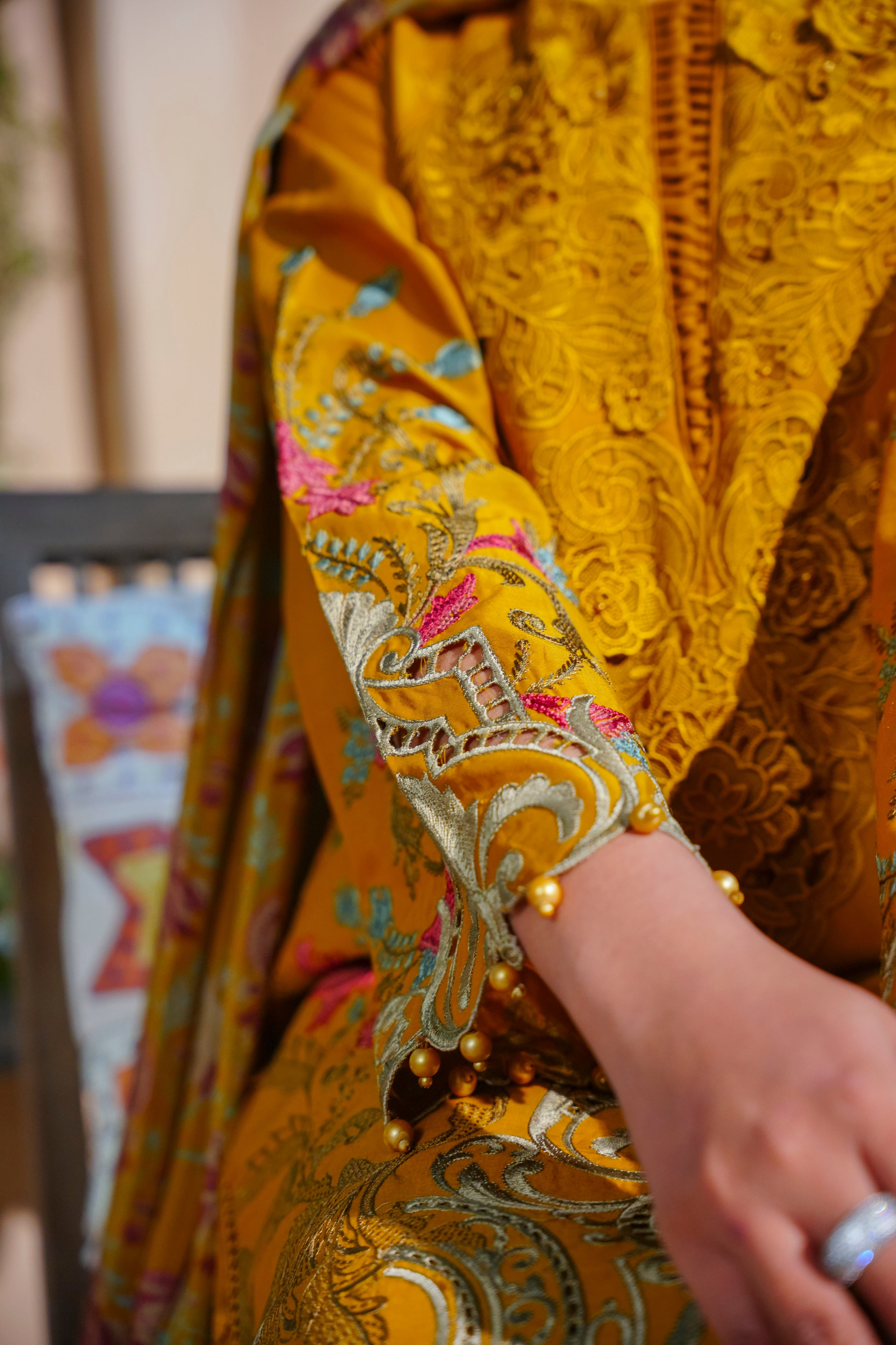 Experience the perfect fusion of artistry and elegance with this meticulously crafted ensemble that celebrates the beauty of 3D embroidery and pearl embellishments.
