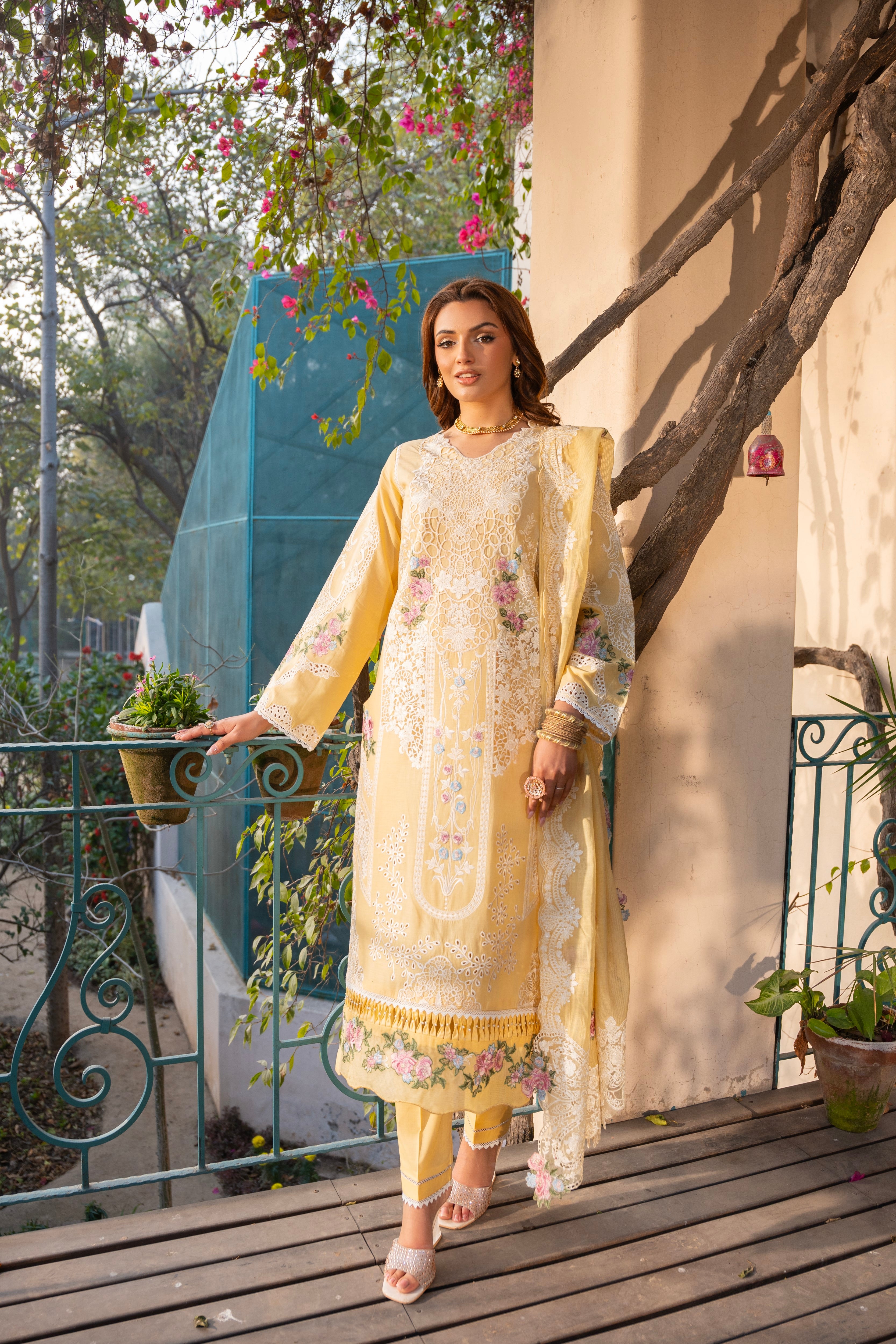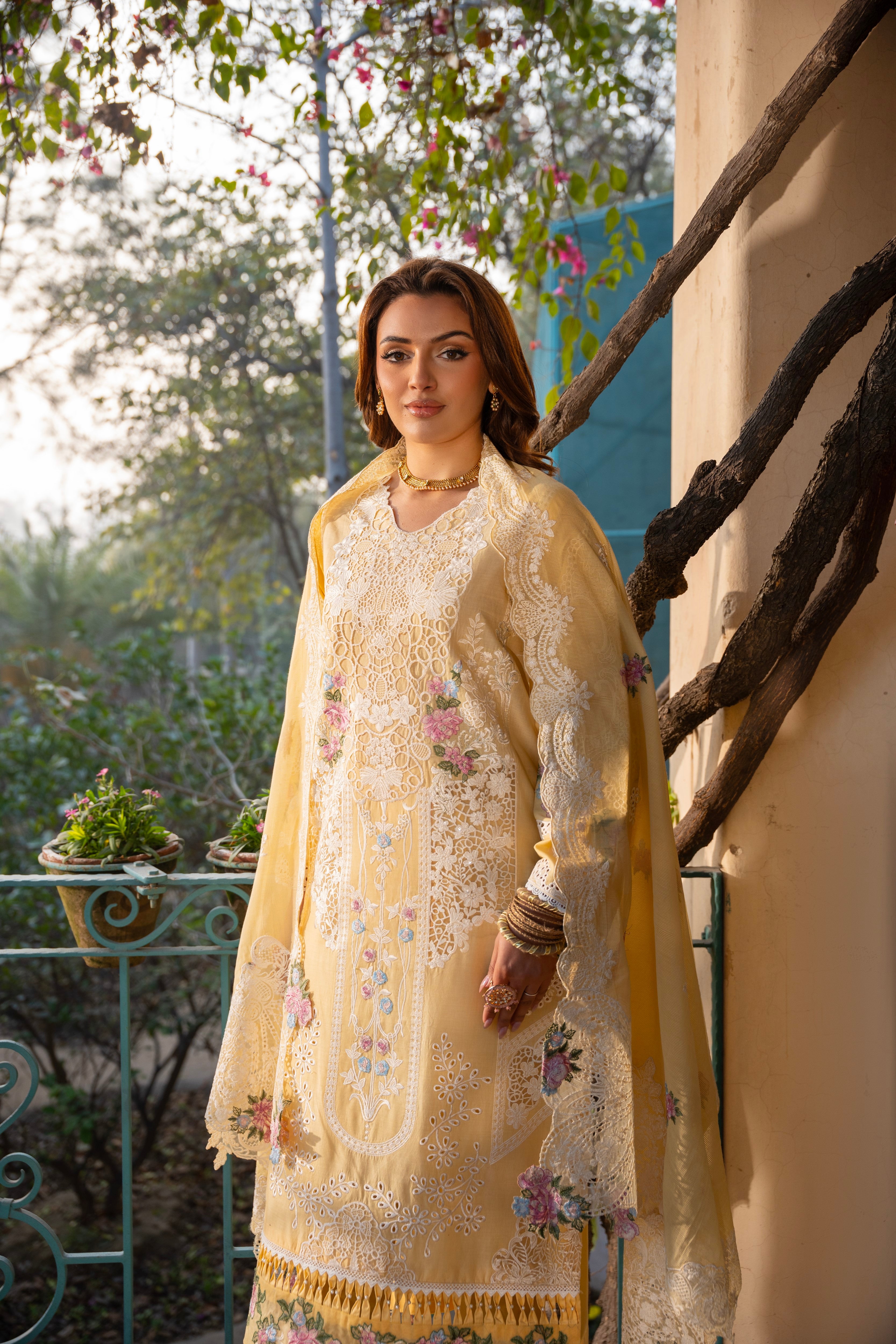 Embrace timeless elegance with this exquisitely crafted three-piece outfit that showcases intricate embroidery and refined detailing. A perfect blend of traditional craftsmanship and contemporary style.