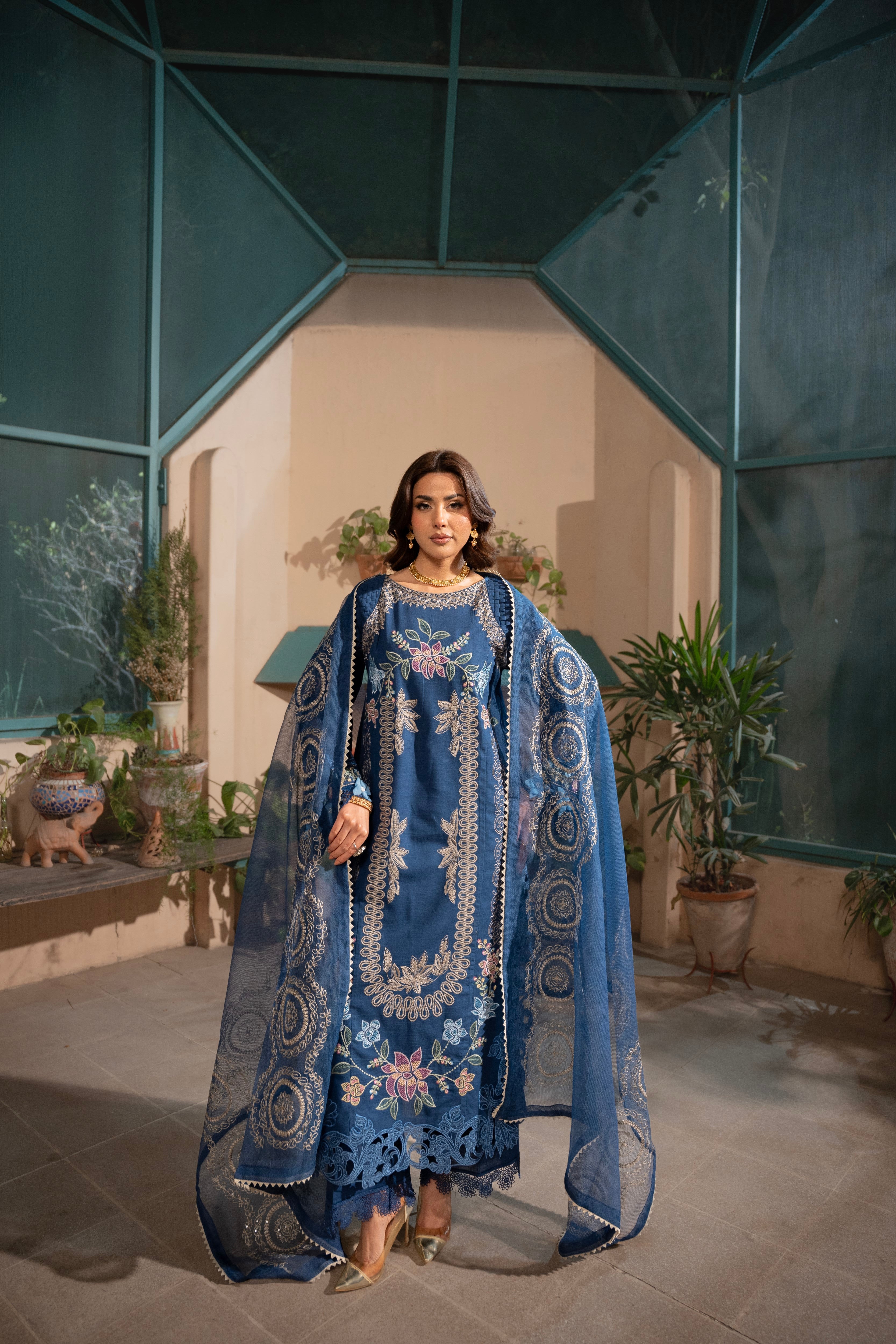 Experience the perfect fusion of traditional embroidery techniques, delicate cutwork, and handcrafted embellishments in this truly exceptional ensemble.