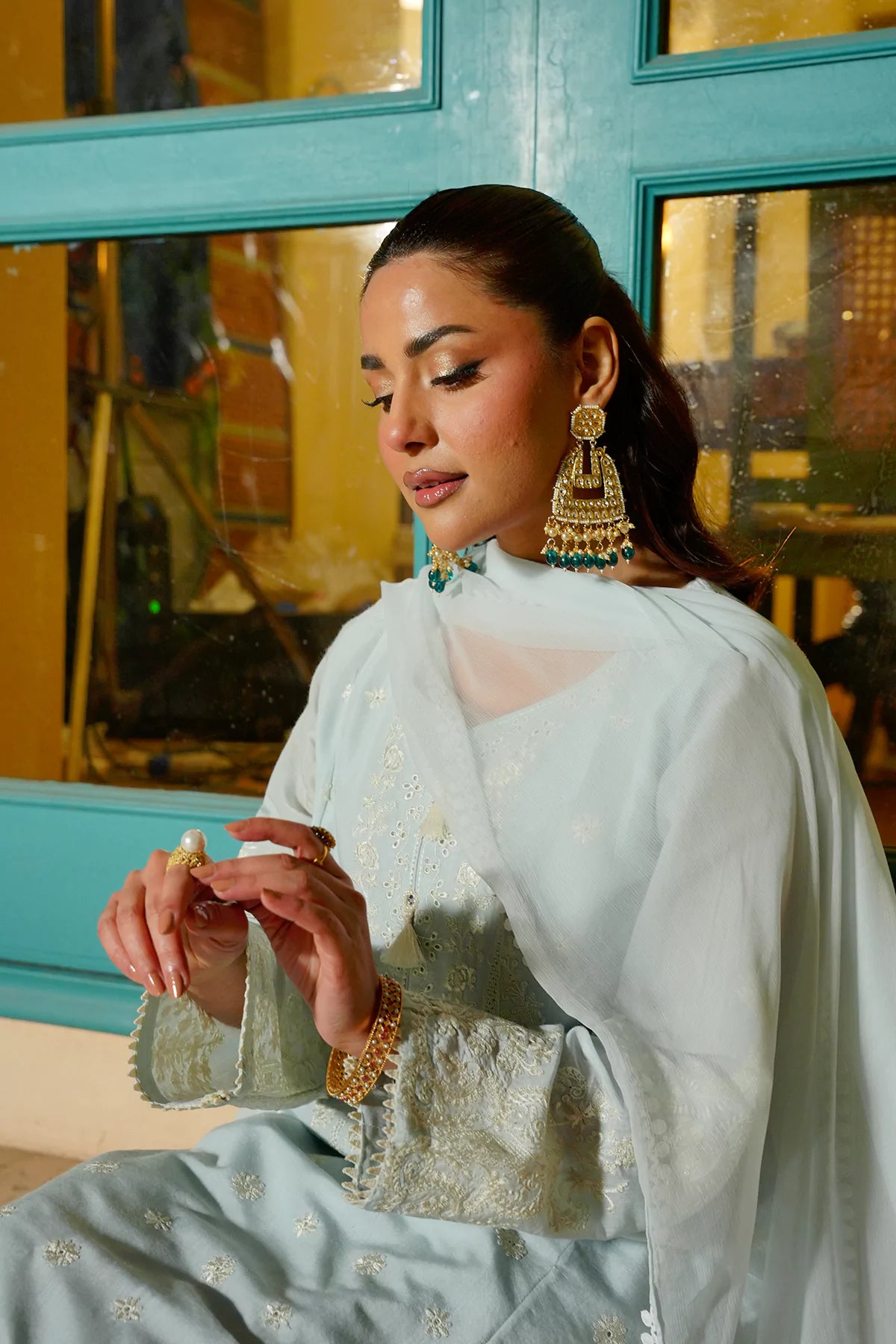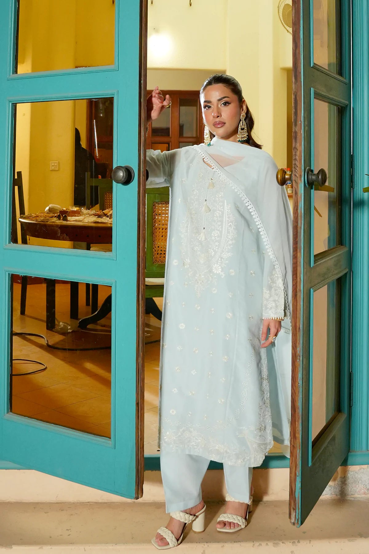 Step into effortless elegance with Aqua Aura Set – Delicate Elegance, a beautifully crafted ensemble that reflects grace, delicate artistry, and timeless sophistication. Designed for women who appreciate refined embroidery and subtle luxury, this outfit blends soft pastel tones with intricate detailing to create a look that feels both classic and graceful.